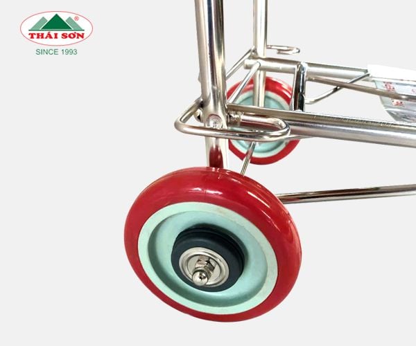 Xe đẩy xếp gọn Thái Sơn được thiết kế, sản xuất theo tiêu chuẩn châu Âu. Khung sườn được làm bằng ống inox 201 kết hợp với inox láp đặc chắc chắn.